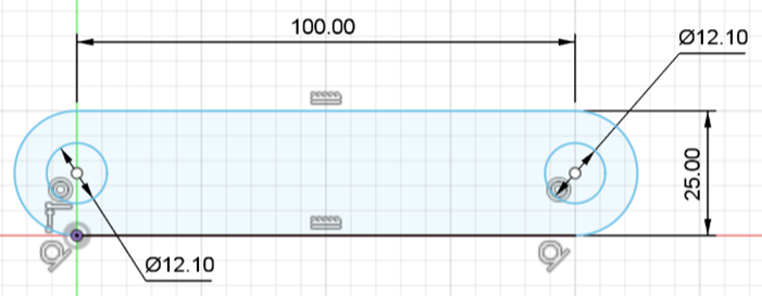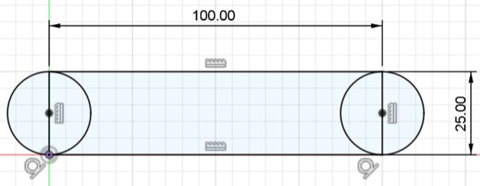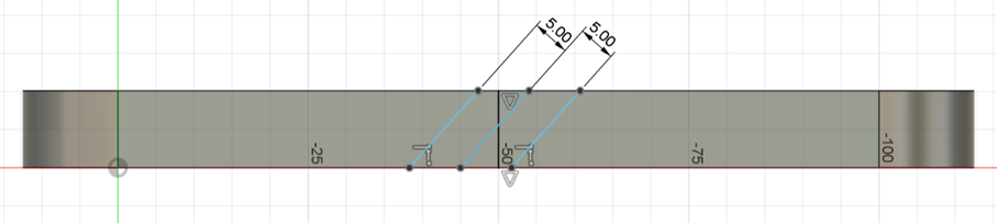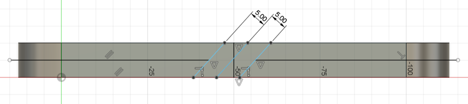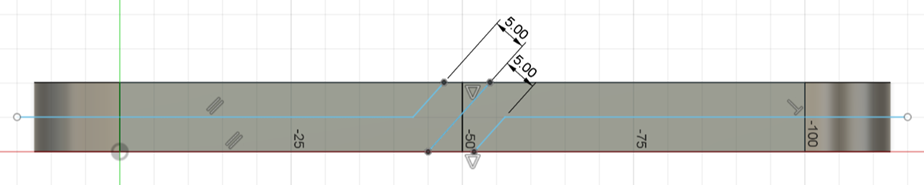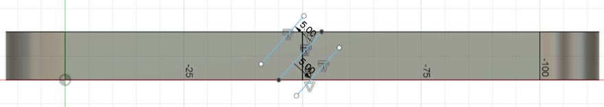 THE EDGE OF THE LINK a) Start by creating a vertical line in the middle of the face. b) Create a 45 degrees line that goes through the midpoint of the previous line. c) Use offset (by 5) to create a line on each side of the previous line.